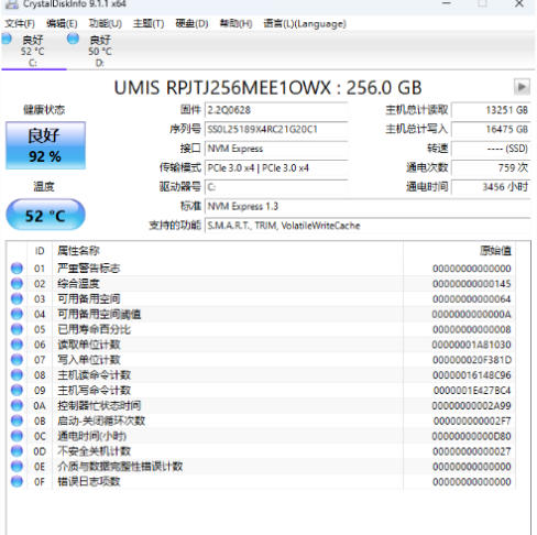 重新扫描硬盘:在 CrystalDiskInfo 中点击“刷新”按钮,或重启软件后重新检测。